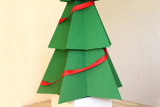 Borna Aaron Grčević i Andrej Đukić, studenti na Fakultetu za dizajn u Zagrebu, osmislili su svoje božićno drvce. “Less is bor”, kako su ga nazvali, napravljen je od ljepenke i papira i može biti postavljen u tri različite pozicije – kutno, oslonjen na zid ili u raširen u 360 stupnjeva. Jela je visoka jedan metar, a njezin je promjer 50 cm. Kad je izvan upotrebe, slaže se kao knjiga.