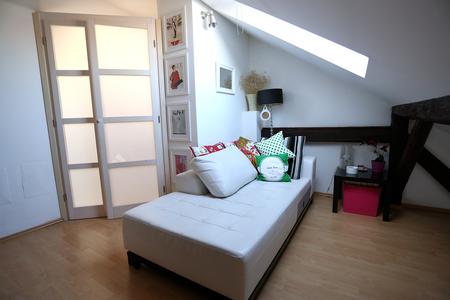 Potkrovlje jedne stare zagrebačke zgrade u strogom centru grada prije nekoliko godina postao je novi dom mladog i dinamičnog bračnog para – novinarke Dore Juras Pivac i arhitekta Jana Pivca. Bio je to tavanski prostor koji je trebalo definirati u stambeni prostor, s nekoliko svojih zadatosti – kosinama, gredama, dimnjacima. Sve je to ne svoj način nametalo i raspored prostorija i stil uređenja.