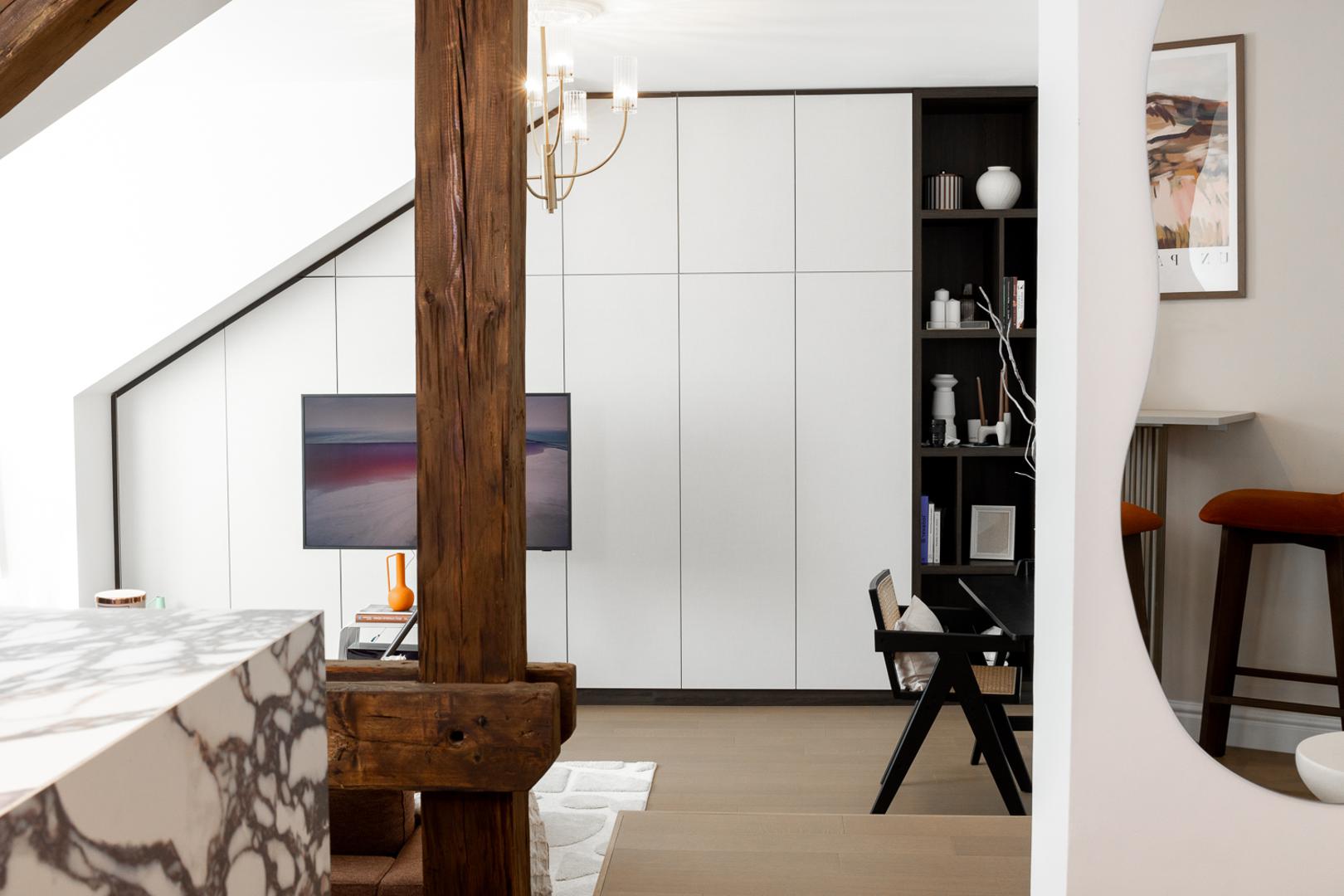 - S obzirom na to da je cijeli stan pod kosinama i nepravilnog oblika, puno pažnje posvetila sam funkcionalnosti i pametnim rješenjima za pohranu. Dio namještaja izrađen je po mjeri – poput mini „walk-in“ ormara koji sam smjestila u nekadašnju ostavu te diskretne šipke za vješanje jakni odmah pri ulazu, koja je ujedno i dekorativan detalj - otkriva dizajnerica.