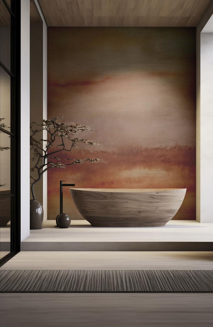 "Svaki dezen odražava skladnu interakciju zemljanih tonova, evocirajući mir i spokoj koji podsjećaju na nježni val koji zapljuskuje obalu. Zamršene teksture hvataju bit prirodnih elemenata, besprijekorno spajajući eleganciju s organskom ljepotom koja nas okružuje. Zidni murali koji prikazuju humke pijeska oblikovane vjetrom, pronađene u pustinjama i uz plaže, pokazujući teksture i uzorke stvorene vjetrom."
