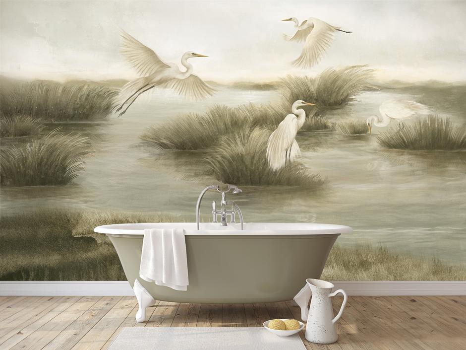 Tapete iz ove kolekcije nisu samo dekor. One imaju dubinu, karakter i taktilnost koja podsjeća na ručno oslikano platno. Kad ih vidite jednostavno ih poželite dotaknuti. U njima se susreću pejzaži koji izgledaju kao da su iz snova – maglovite šume, mirne obale, raskošni lotusi i siluete životinja koje odvažno zauzimaju prostor. To su zidovi koji pričaju, ali šaptom – i uvijek onim tonom koji odgovara prostoru u kojem žive.