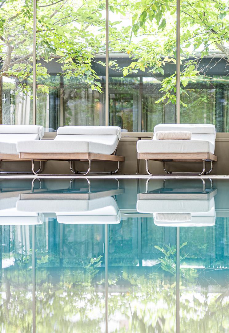 Studio Madres potpisuje recentne interijere Meneghetti Wine Hotela i restorana Stara Škola, koji je nedavno započeo suradnju s Anom Roš, jednom od najpriznatijih svjetskih chefica. U Meneghetti Wine Hotel & Resortu, studio Madres potpisuje spa zonu, orangeriju i plažni objekt, gdje luksuz nije nametljiv, već je utkan u priču, prirodan i sofisticiran. „Naš cilj je bio stvoriti scenografiju za osjetilno iskustvo i uživanje kroz vizualne podražaje detaljima – od tekstura ručno rađene keramike, do posebno dizajnirane opreme.“, objašnjava Ana Penavić. Središte prostora, recepcijski spa-stol obložen portugalskom keramikom, funkcionira kao skulptura i mjesto susreta s gostom – element koji spaja estetski užitak i funkcionalnost.