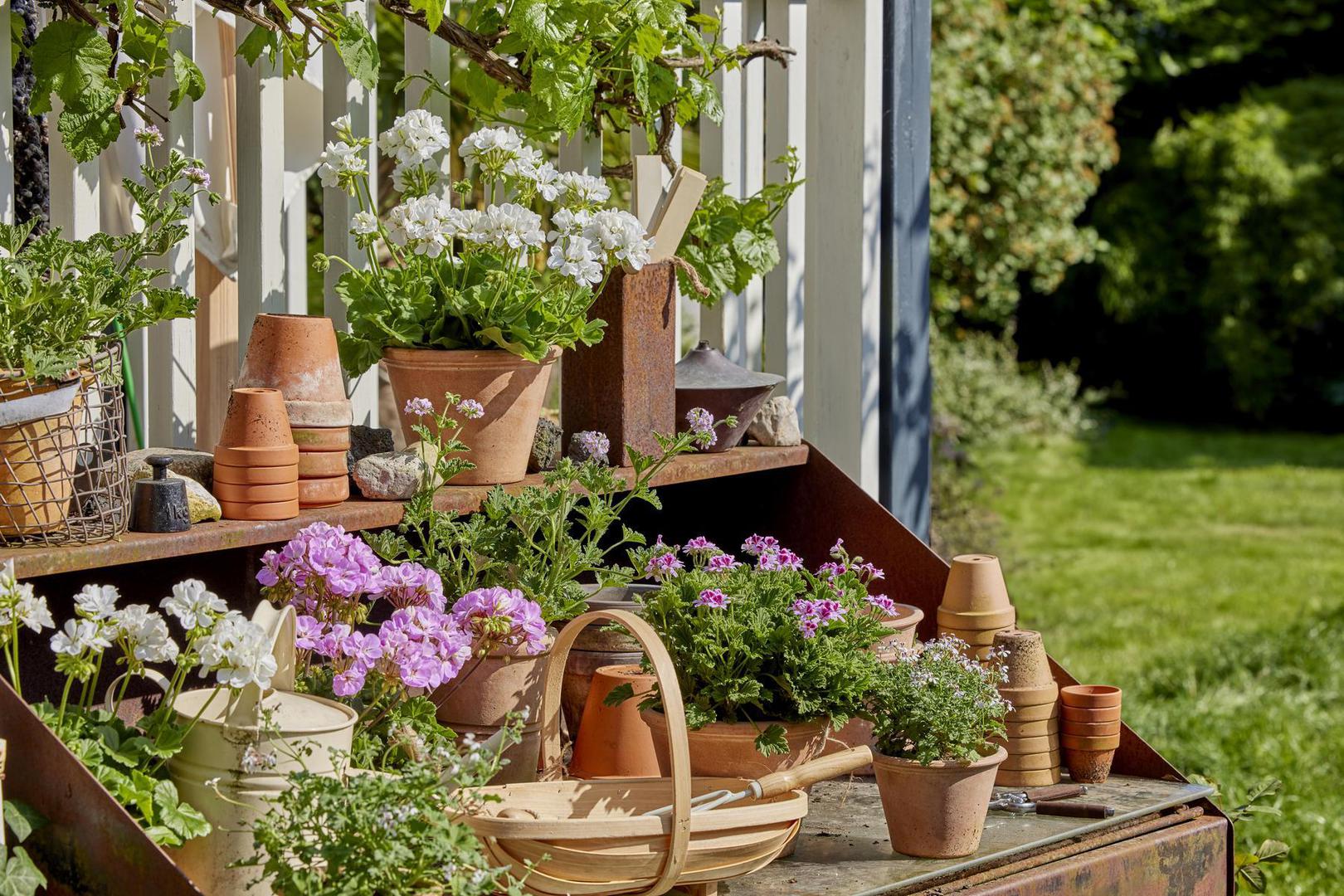 U suvremenim vanjskim životnim prostorima, elegantni drveni komadi i dodatci odraz su održivosti i stila kojeg odlično nadopunjuju pelargonije s bujnim cvjetovima. Sa svojim gustim cvjetovima i živim bojama, ove biljke koje se lako održavaju utjelovljenje su ljeta, a drvene žardinjere sjajno ističu njihovu posebnost. Pelargonije su izvorno uzgajane kao sobne biljke jer potječu iz toplijih krajeva pa im je vani potrebno sunčano mjesto zaštićeno od vjetra i kiše. Svjetlom obasjana natkrivena terasa je savršena za njih. Koristite li drvene žardinjere ili tegle, preporučeno je staviti sloj ekspandirane gline kako biste zaštitili drvo od oštećenja vlagom.
